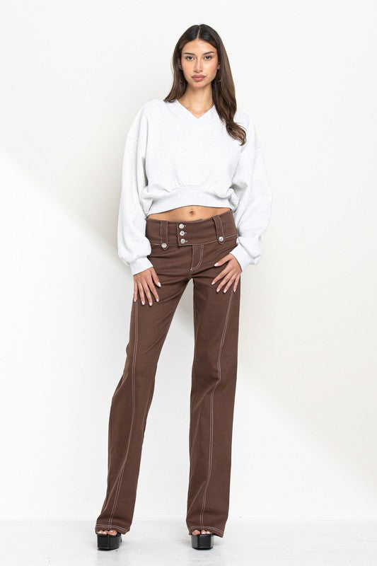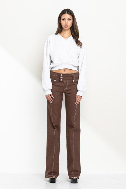 Este pantalón de mezclilla cuenta con un corte vaquero y un detalle de línea punteada, lo que lo hace perfecto para cualquier ocasión. Con su estilo clásico y su tela resistente, estos jeans te brindarán comodidad y durabilidad al mismo tiempo. Eleva tu atuendo con este imprescindible básico de moda.