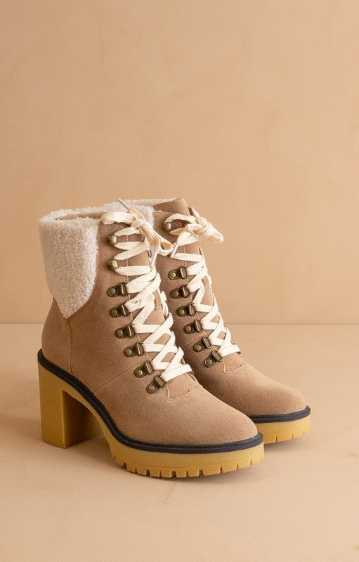 Luce un estilo versátil con nuestras Botas Madilyn, perfectas para cualquier clima gracias a su alta calidad de gamuza y detalle borrega. Con cintas que añaden un toque moderno y un ajuste cómodo y cálido, estas botas serán su opción ideal para el otoño e invierno.